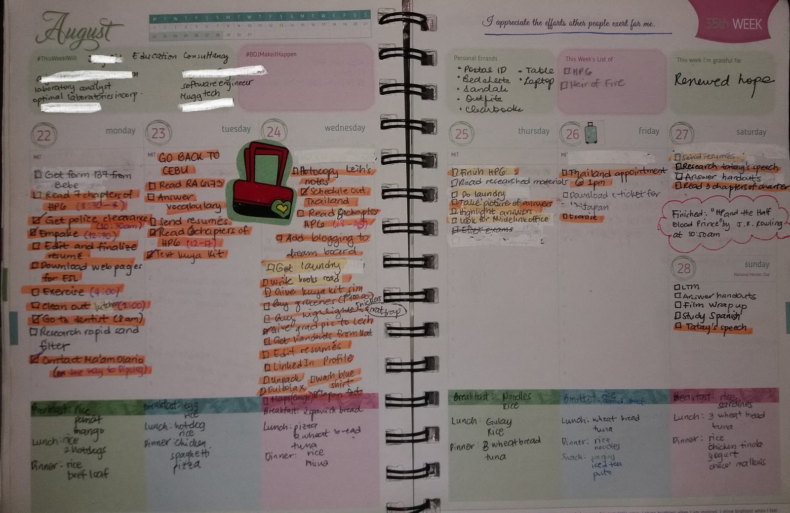 Personal Errands – This is for your random to-do list, especially for ones that you don’t necessarily need to get done on a particular day but needs to be done before the end of the week (at least that’s how I use it).