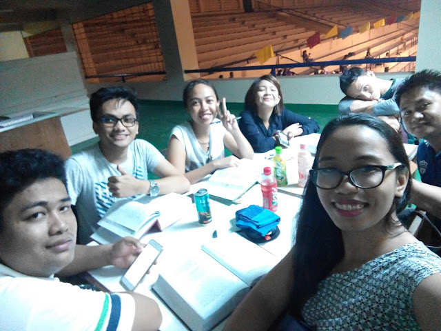 | We were required to watch a basketball game, but seeing that we all brought our study materials with us, we ended up studying at the gym. We still cheered every now and then, though. |