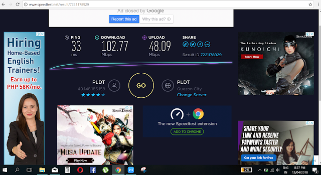 As expected, the connection speed is not consistent, and sometimes it would be so slow that you’d think it was a bad idea to upgrade. It’s only been a month, and I had already called the PLDT hotline to complain about the connection. I constantly run speed tests to ensure that I am getting the value of what I’m paying for. The connection would sometimes be so fast.